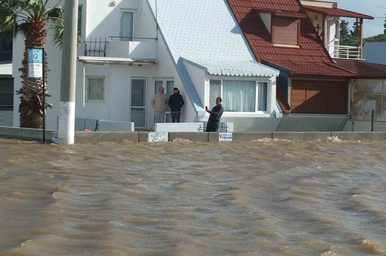 Öğlen saatlerinden itibaren etkili olan lodosun hızı zaman zaman 70 kilometreyi buldu. Ören ve Öğretmenler Mahallesi’nde taşan deniz, plajı aşarak cadde ve sokakları göle çevirdi. Sahil bölgesinde kabaran denizle birlikte yollar göle dönerken, yazlıkların sulara gömülmesiyle Venedik’i andıran görüntüler ortaya çıktı.