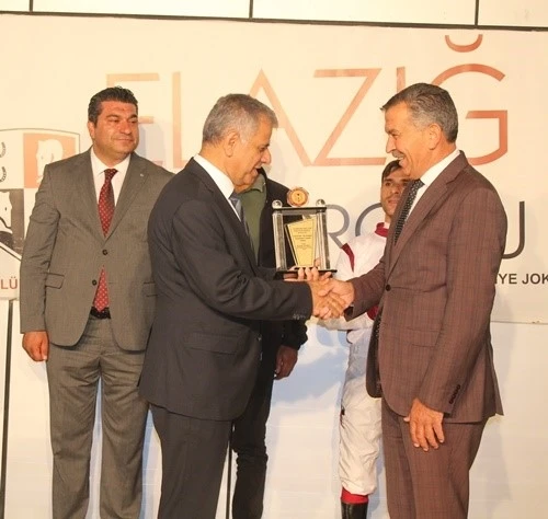 Şeref tribününde gerçekleştirilen törende, koşuyu kazanan safkanın sahibi adına Feridun Ergin’e ödülünü ve jokey Mehmet Doğan’a çiçeğini Fırat Üniversitesi Veteriner Fakültesi Dekanı Prof. Dr. Kazim Şahin verdi. Elazığ Bölgesi Veteriner Hekimler Odası Başkanı Cazim Bulut da Elazığ Hipodromu At Hastanesi Başhekimi Mustafa Sevim’e günün anısına plaket takdim etti. Törene, Elazığ Hipodrom Müdürü Muhammet Demirçelik ile davetliler de katıldı.