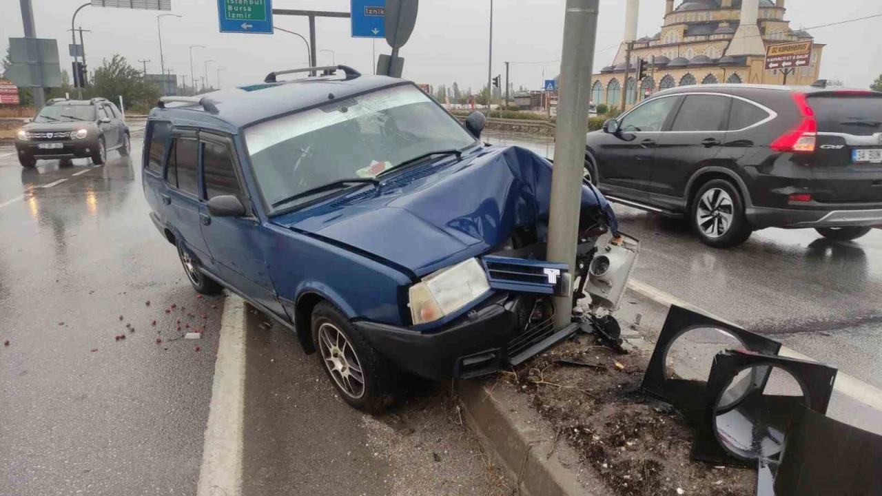 Bursa’nın Orhangazi ilçesinde İznik yolu Otoban kavşağında yağmur sebebiyle kayganlaşan yolda kontrolden çıkan otomobil, orta refüjdeki trafik lambasına çarparak durabildi.