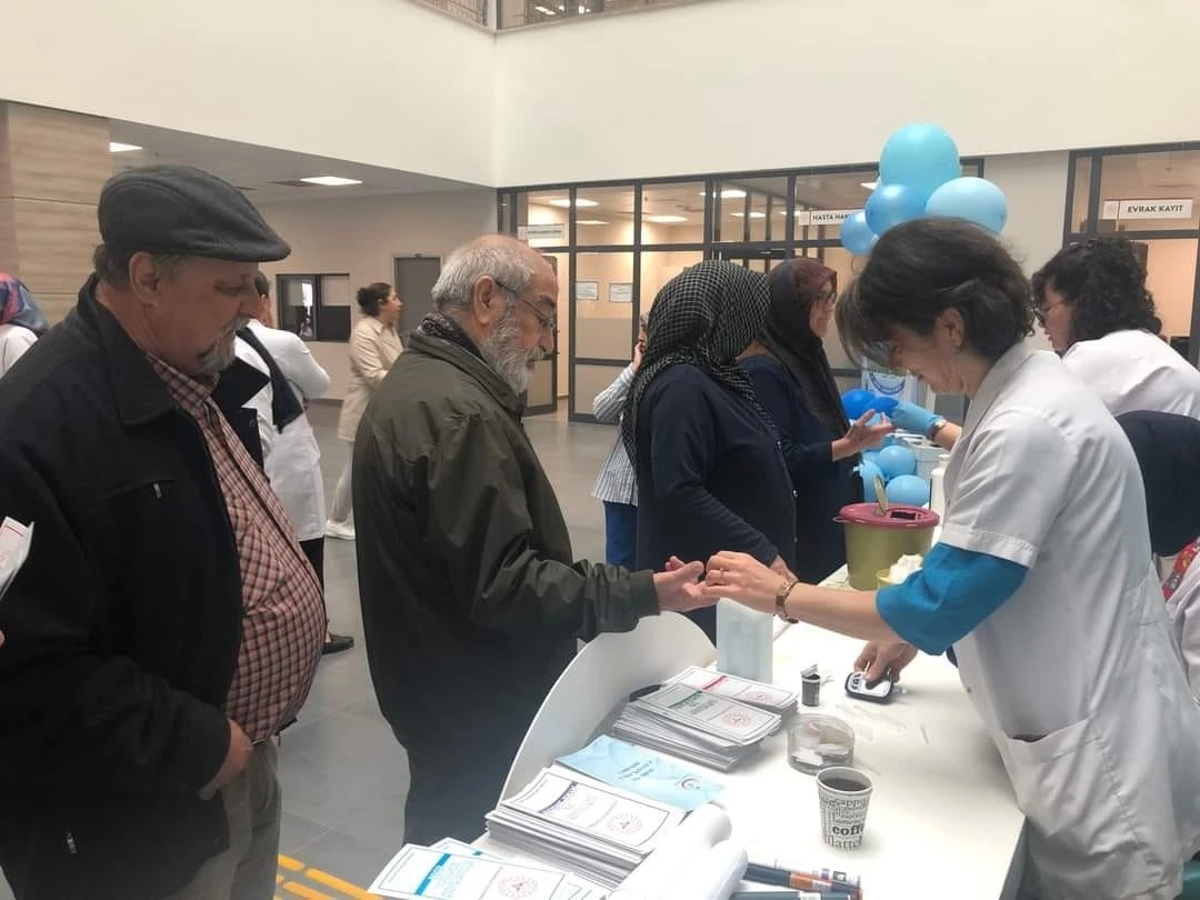 Kurulan stantta dağıtılan broşürlerle vatandaşlar bilgilendirildi. Ayrıca yapılan kan şeker ölçüm sonuçlarına göre vatandaşlar bilgilendirilerek ilgili alanlara yönlendirildi. Başhekim Doç. Dr. Hasan Ergenç de Dünya Diyabet Günü standını ziyaret etti. Ergenç, burada yaptığı konuşmada, “Ülkemizde ve dünyada diyabet sıklığı giderek artmaktadır. Diyabet kronik bir hastalıktır. Pankreastaki beta hücrelerinin insülin salgısının üretimin azalmasıyla ya da üretimin yeterli düzeyde olmasına rağmen organlarda yeterince fonksiyon görememesine bağlı olarak kan şekeri yüksekliğiyle seyreden kronik bir hastalıktır. Kronik hastalık olduğu için ömür boyu devam eden bir hastalıktır. Bütün sistemleri etkilemektedir. Bütün organları etkilemektedir. Ciddi organ kayıpları mesela en fazla gözdeki görme kaybına, ayakların kesilmesine kadar neden olmaktadır. Hatta ölümcül komplikasyonlara da neden olmaktadır. Normalde bu hastalığın sıklığının artması obezitenin artması, obezite de teknolojinin hayatımıza girmesi, hayatımıza yer alması, katkı maddeleri, işlenmiş gıdaların olmasından dolayı obezite sıklığının artmasına bağlı olarak diyabet sıklığı artmıştır. Normalde diyabet kronik bir hastalık olduğu için erken teşhis ve takiplerle önlenebilen bir hastalıktır. Yani diyabetten korkmayalım, erken tanı takip bizim için önemli olduğu için yaşam kalitemizin düzetmek açısından takip ve kontrollerimizi düzenli yapalım. Hekimler, diyetisyenler ve de diyabet hemşireleri ile beraber vatandaşlarımıza sağlık hizmeti sunulmaktadır" dedi.