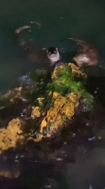 Yalova’nın Çiftlikköy ilçesi kıyısında, nesli tükenmekte olan türler arasında yer alan 2 su samuru bir vatandaşın cep telefonu kamerasıyla görüntülendi.