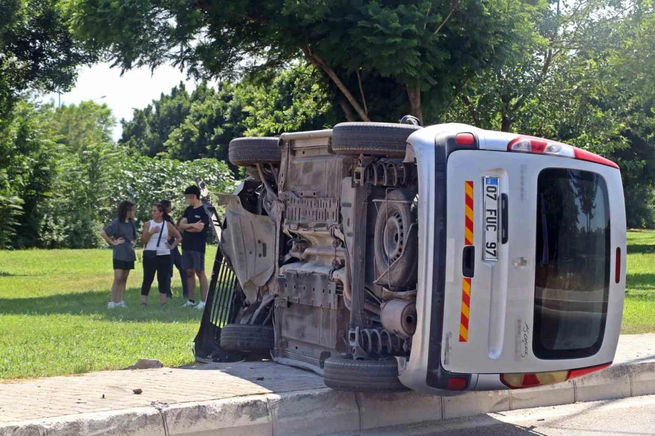 Antalya’da virajı alamayan hafif ticari araç kaldırıma çarpıp yan yattı. Kazayı gören diğer sürücülerin 112’ye haber vermesi üzerine olay yerine 3 ambulans, 1 acil müdahale motorize sağlık ekibi, 1 itfaiye ve polis sevk edildi. Olay yerine gelen ekipler sürücü anne ve yanındaki küçük kızının sıyrık dahi almadığını görünce şaşkınlık yaşadı.