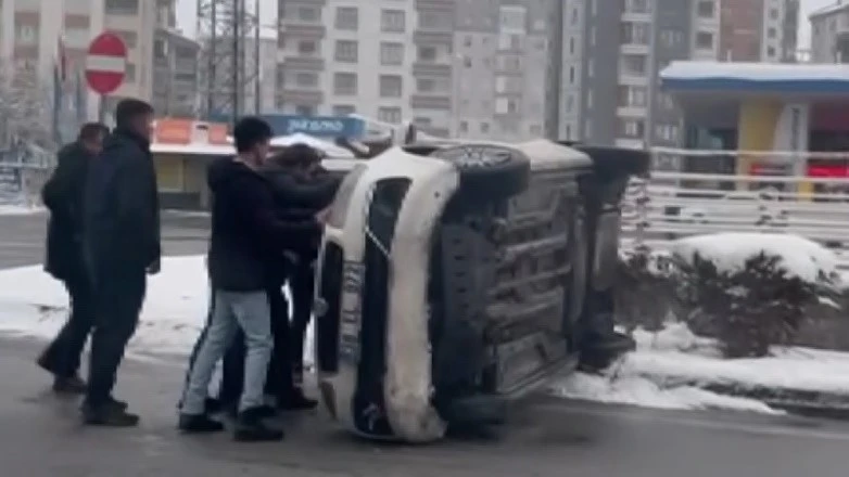 Kaza, Mithatpaşa Mahallesi Bekir Yıldız Bulvarı üzerinde meydana geldi. İçinde sürücü ve bir yolcunun bulunduğu otomobil, direksiyon hakimiyetinin kaybedilmesi sonucu kaldırıma çarpıp devrildi. Kazayı gören vatandaşlar, araçtakilere yardım etmek için harekete geçti. Önce kapıları açmaya çalışan vatandaşlar, başarılı olamayınca otomobili iterek düzeltmeye çalıştı. Araç, içeridekiler hala içindeyken çevredeki kişilerin müdahalesiyle eski konumuna getirildi ve mahsur kalanlar dışarı çıkarıldı.