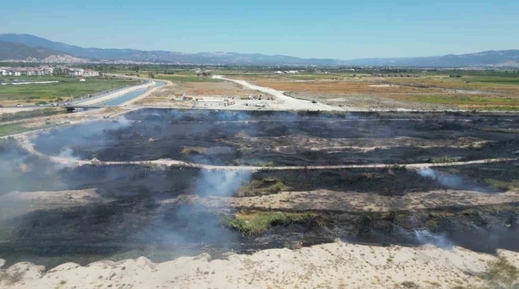 Altınkum Mahallesi Dalyan mevkiinde göçmen kuşların göç güzergahında bulunan denize yakın noktadaki sazlık alanda henüz belirlenemeyen bir nedenle 3 ayrı noktada yangın çıktı.