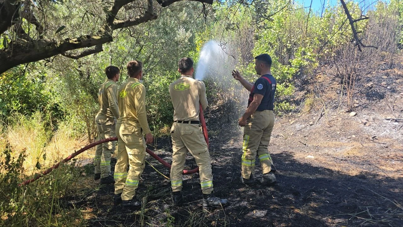 Bursa’nın Mudanya ilçesi Göktepe mevkiinde çıkan yangında yaklaşık 8 dönümlük zeytinlik ve çalılık alan zarar gördü. Alevlerin buğday tarlasına ulaşması son anda engellendi.
