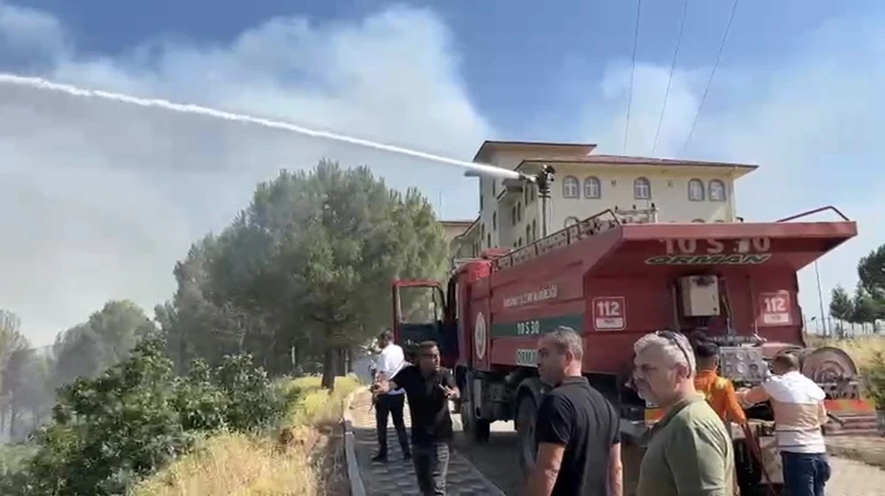 Balıkesir’in Dursunbey ilçesinde koruluk alanda çıkan yangın okul binasını tehdit etti. Ekiplerin müdahale ettiği yangın okula metreler kala söndürüldü.