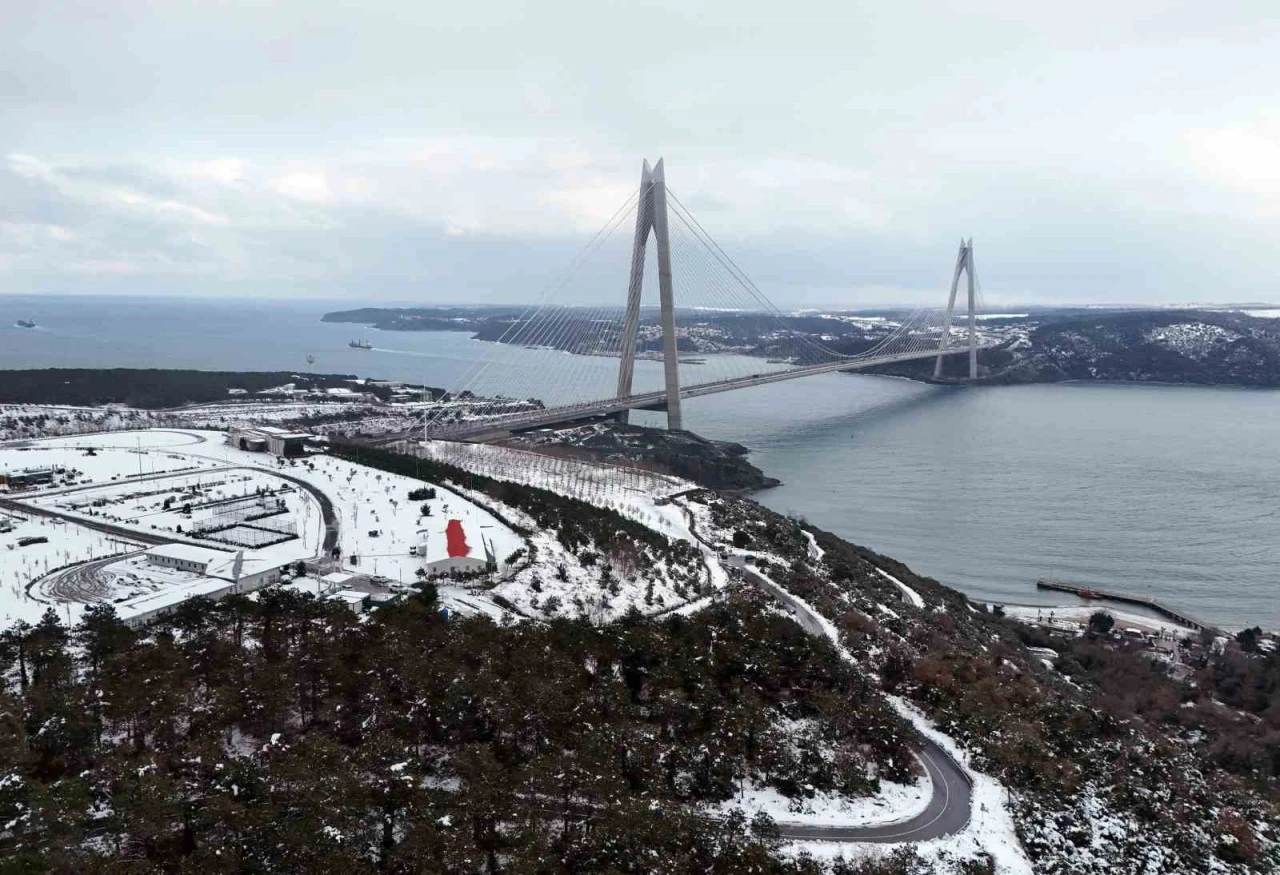 İstanbul’da etkili olan kar yağışı ile Yavuz Sultan Selim Köprüsü’nün çevresi beyaza büründü. Havadan çekilen görüntülerde kartpostallık manzaralar oluştu.