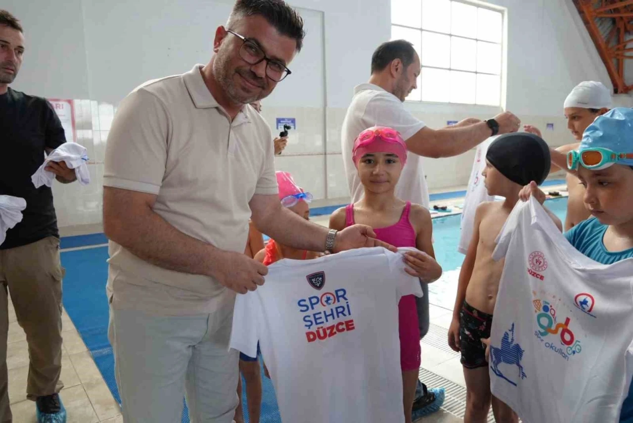 Sporcu gençleri ve çocukları ziyaret eden Gençlik ve Spor İl Müdürü İsa Yazıcı ile Düzce Belediyesi Gençlik ve Spor Hizmetleri Müdürü Cihan Ünal, sporcu çocuklarla bir araya geldi. Ziyarette sporcularla sohbet eden Yazıcı ve Ünal, yaz tatilini sporla değerlendiren çocuklara forma hediye ederek onlara moral verdi.