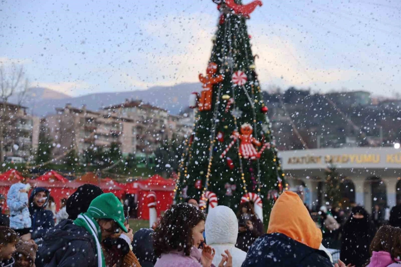 Bursa Büyükşehir Belediyesi tarafından Eski Atatürk Stadyumu alanında hazırlanan ‘Bursa Yeni Yıl Meydanı’nda, birbirinden renkli etkinliklerle yeni yıl heyecanı yaşanmaya başlandı. Yapay kar yağışıyla doyasıya eğlenen vatandaşlar, açık havada hazırlanan buz pisti ve diğer etkinlik alanlarıyla keyifli bir gün geçirdi.
