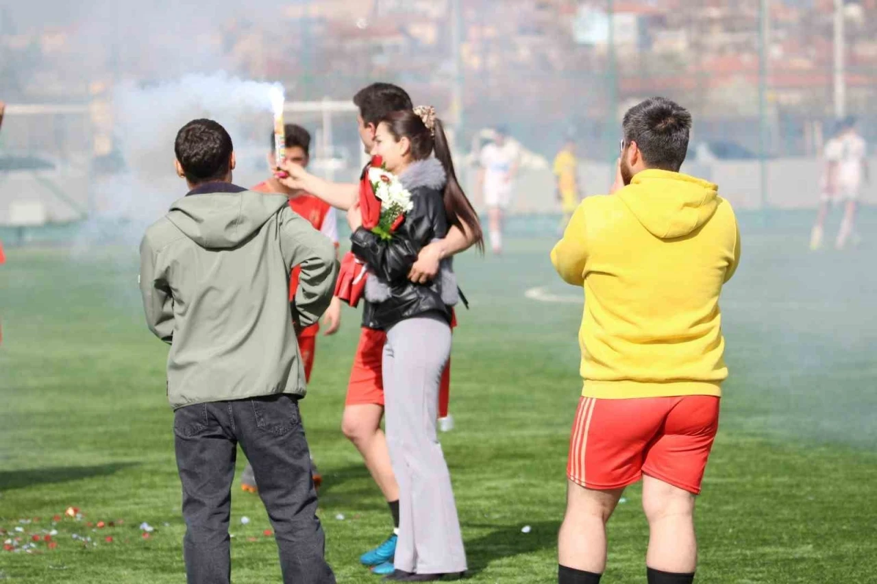 Kayseri 2. Amatör Küme ekibi Yavru Aslanspor’un takım kaptanı Muhammed Tarık Tiryaki, Akkışla Gençlikspor karşılaşması sonrası takım arkadaşları ve taraftarların tezahüratları eşliğinde kız arkadaşı Sıla Arıkan’a evlilik teklifi yaptı.