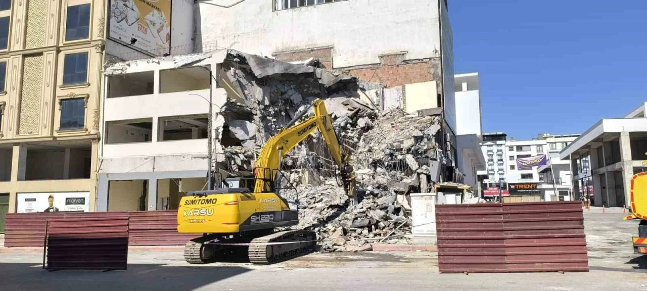 Hatay’ın Dörtyol ilçesinde depremde ağır hasar alan binanın yıkımı esnasında, başına moloz parçası isabet eden yıkım ekibi görevlisi operatör yaralandı.