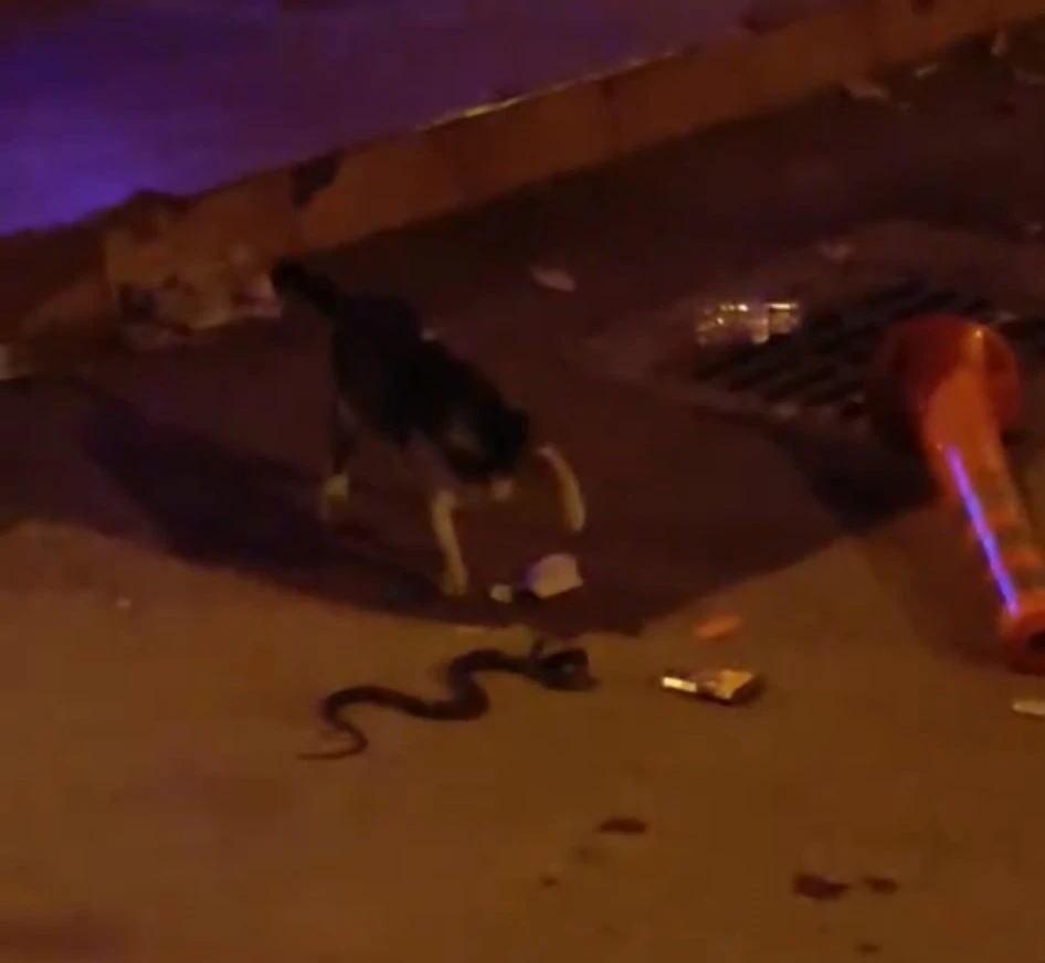 Doğal yaşamın şehir merkezinde dahi etkisini gösterdiği olayda, bir kediyle yılanın karşı karşıya geldiği anlar çevredeki vatandaşların dikkatini çekti. Kısa süreli gerilimli anların yaşandığı kavga, cep telefonu kamerasıyla saniye saniye kaydedildi. Kedinin yılanı uzaklaştırmaya çalıştığı görülen görüntülerde, yılanın da kendini savunduğu dikkat çekti.