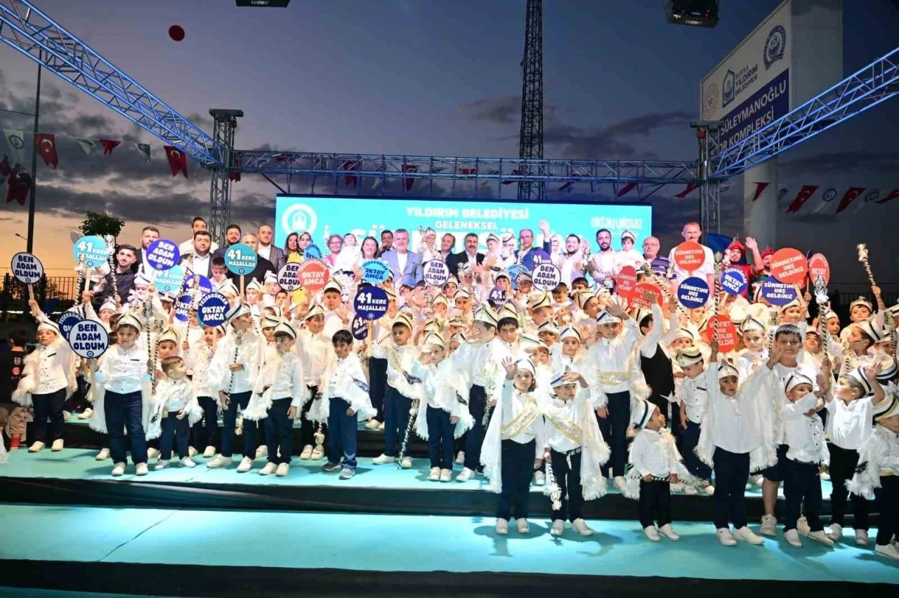 Çocuklar için, Yıldırım Belediyesi ve Mercedes Benz Team 16 Derneği iş birliğinde klasik araçlardan oluşan sünnet konvoyu ile başlayan şölen, Kuran’ı Kerim tilaveti, mehter takımı konseri, Hacivat ve Karagöz gösterisi gibi etkinlikler ile devam etti. Sünnetin dini bir vecibe olmasının yanı sıra çocukların hayatındaki önemli hatıralarından birisini teşkil ettiğini aktaran Yıldırım Belediye Başkanı Oktay Yılmaz, "Yavrularımızın bugününü daha güzel bir hale dönüştürmek için geleneksel hale getirdiğimiz Sünnet Şenliğimiz kapsamında 600 çocuğumuzu sünnet ettirdik. Şimdi ise onların mutluluklarına ortak olmak için buradayız. Biliyoruz ki; çocuklarımız yalnızca bu ilçenin değil, bu şehrin yarınları, bu milletin umutlarıdır. Bugün burada yavrularımızın hafızalarında unutulmaz bir hatıra bırakmak istiyoruz" diye konuştu.