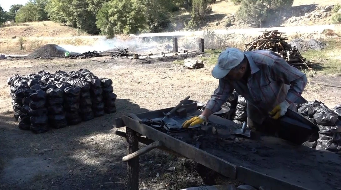 "Meşe odunu kamyonla, tırla geliyor. Yaklaşık 25 ton odun geliyor. Bunu 4-5 sefer elimizden geçiriyoruz. Ayırıyoruz, diziyoruz, kesiyoruz, samanlıyoruz, topraklıyoruz ve yakıyoruz. 15 gün bekliyoruz, gece gündüz başında duruyoruz. 15 gün sonra soğutuyoruz, sonra yavaş yavaş kuyuları açıyoruz. Kuyuların sistemi, eski sisteme göre daha iyi. 5 veya 6 ton odundan 1 ton kömür elde ediliyor. Yani koyduğun odunun hepsi kömür olmuyor. Hava şartları iyi giderse 5’de 1, kötü giderse 6’da 1 kömür çıkıyor. Adam bulamıyoruz. Adam bulsak beş ayda burada 100 ton kömür çıkarırız ama biz ancak yarısını, yani ortalama 50 ton kömür çıkarabiliyoruz. Millet, piknik alanlarında bunun keyfini sürüyor. Bir de fiyatlar pahalı diyor. Geliyorlar, 50 lira yüksek geliyor. Marketten aldığın kömür belli, 2 kilosu zaten 100 küsur lira, 160 lira. Kömür değil o. Marketten her gün alıyorsun. Bak, biz burada uğraşıyoruz, 24 saat bekliyoruz. Bunun yağmuru var, fırtınası var ama sefasını onlar çekiyor. Onlar yakıyor, sadece ’pıtır pıtır’ yelpazeliyor. Yüzde 50’si mangal yakmayı bile bilmiyor. Alıyorlar gidiyorlar, ’Yakıyoruz’ diyorlar, habire yakıyorlar. O yakanlar bizim için iyi müşteri. Bilen adam bizim için iyi müşteri değil. O güzel yakıyor, 10 kilo kömürü 2 ayda yakıyor. Öbürü 15 günde yakıyor. O, bizim için çok güzel müşteri. Ben onları gözlerinden öpüyorum."