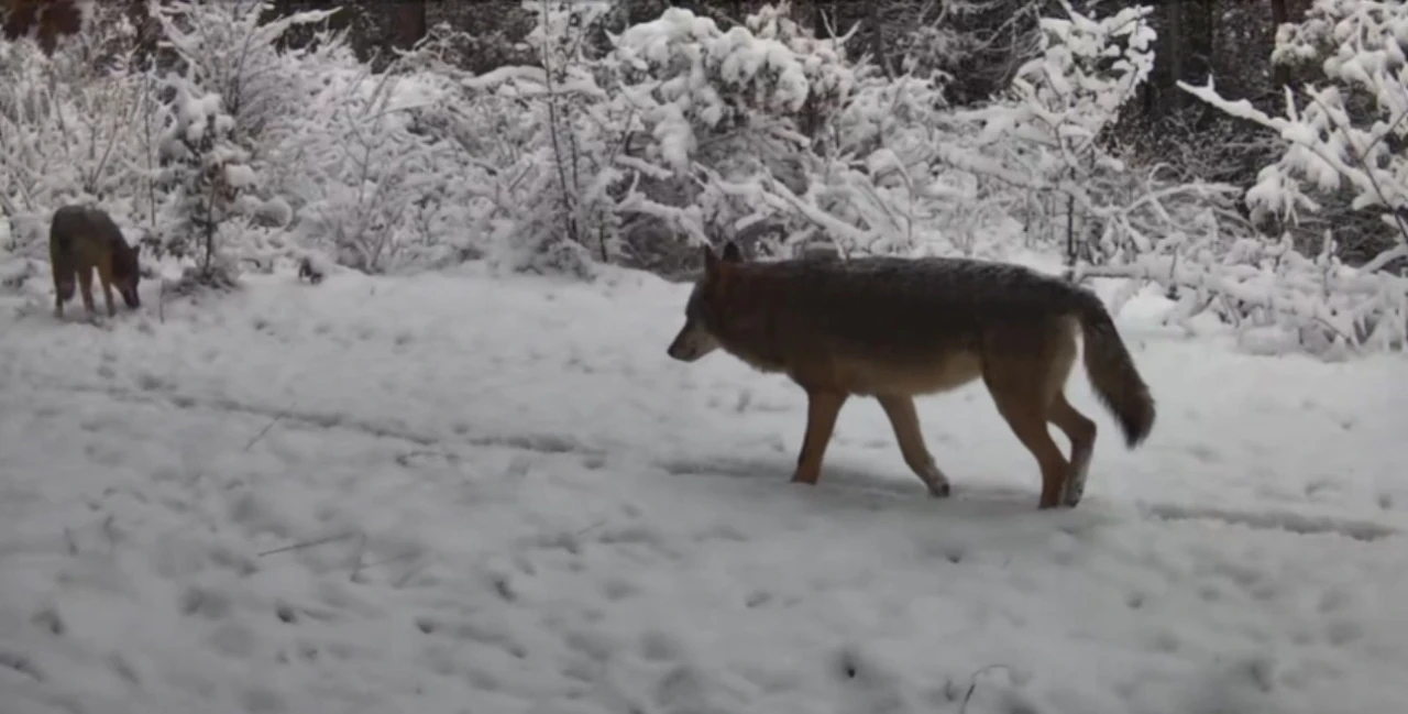 Karabük’ün Ovacık ilçesinde vaşak ve kurtlar yiyecek ararken fotokapana yansıdı.
