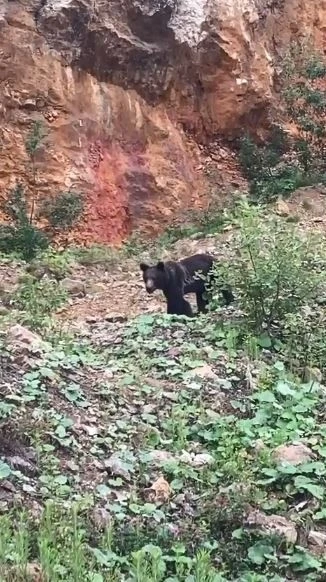 Artvin’in Murgul ilçesinde yol kenarında rastladığı ayıya yiyecek veren Murat Yurttaş, korkup kaçan ayıya “Gel ula gel” diye seslendi.