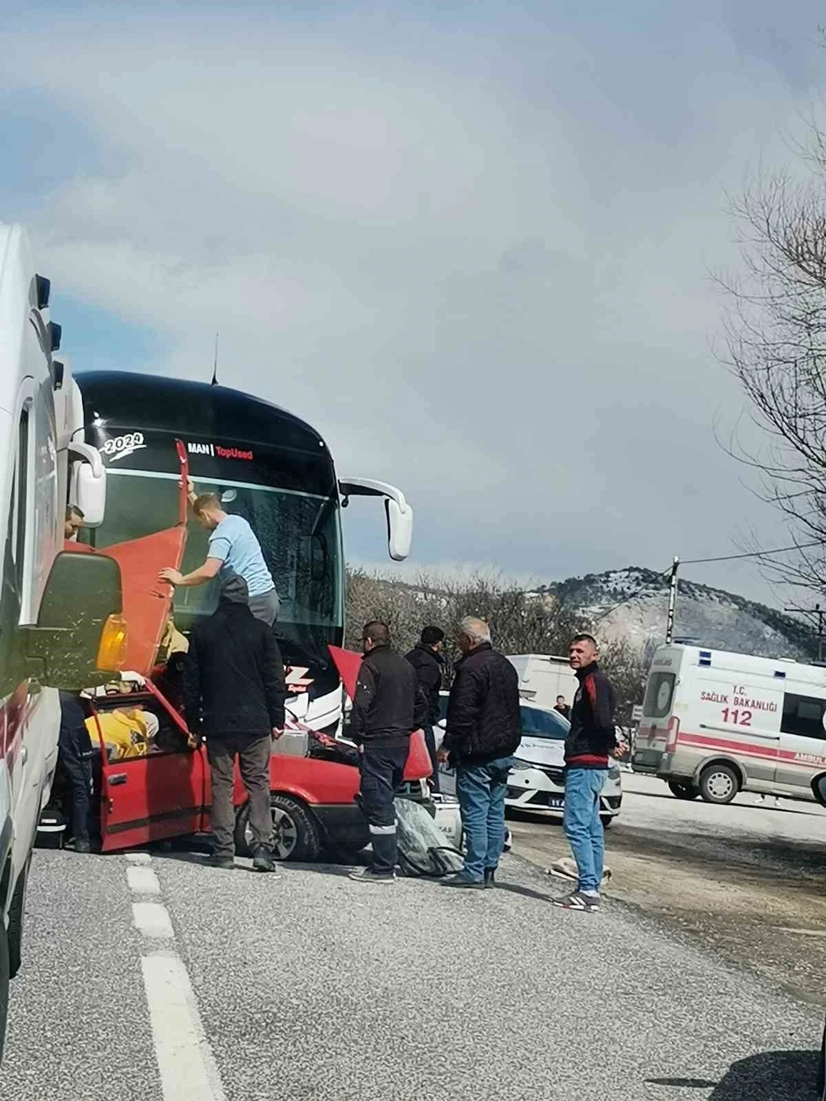 Bilecik’in Bozüyük ilçesinde yolcu otobüsü ile otomobilin çarpışması sonucu meydana gelen trafik kazasında 1 kişi hayatını kaybetti, 1 kişi ağır yaralandı.