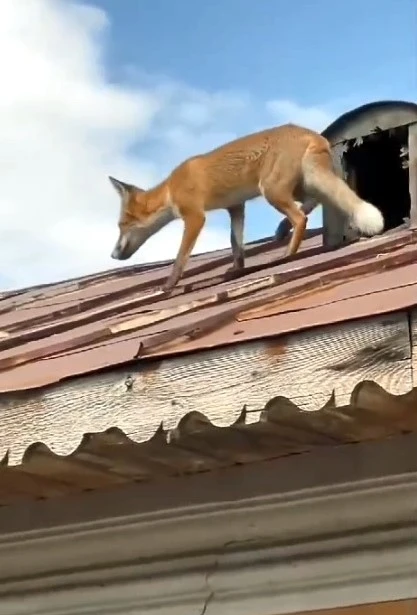 Bartın’ın Arıt Köyü’nde yolunu şaşıran tilki, kanatlı hayvan kümesi yerine bir evin çatısına çıktı. Çatıdan iniş yolunu bulamayınca bir süre gezinen tilkinin o anları, cep telefonu kamerası ile görüntülendi. Sosyal medyada ilgi gören tilkinin bir süre sonra köylünün de yardımıyla çatıdan indirilerek, geldiği ormanlık alana doğru gittiği öğrenildi.