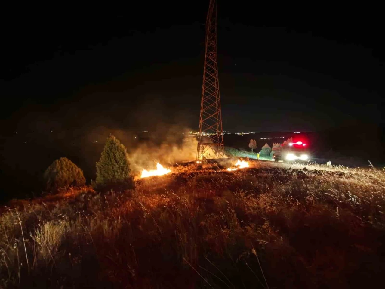 Bilecik’te dün gece bir yüksek gerilim hattı altında çıkan yangın itfaiyenin anında müdahalesiyle söndürüldü.