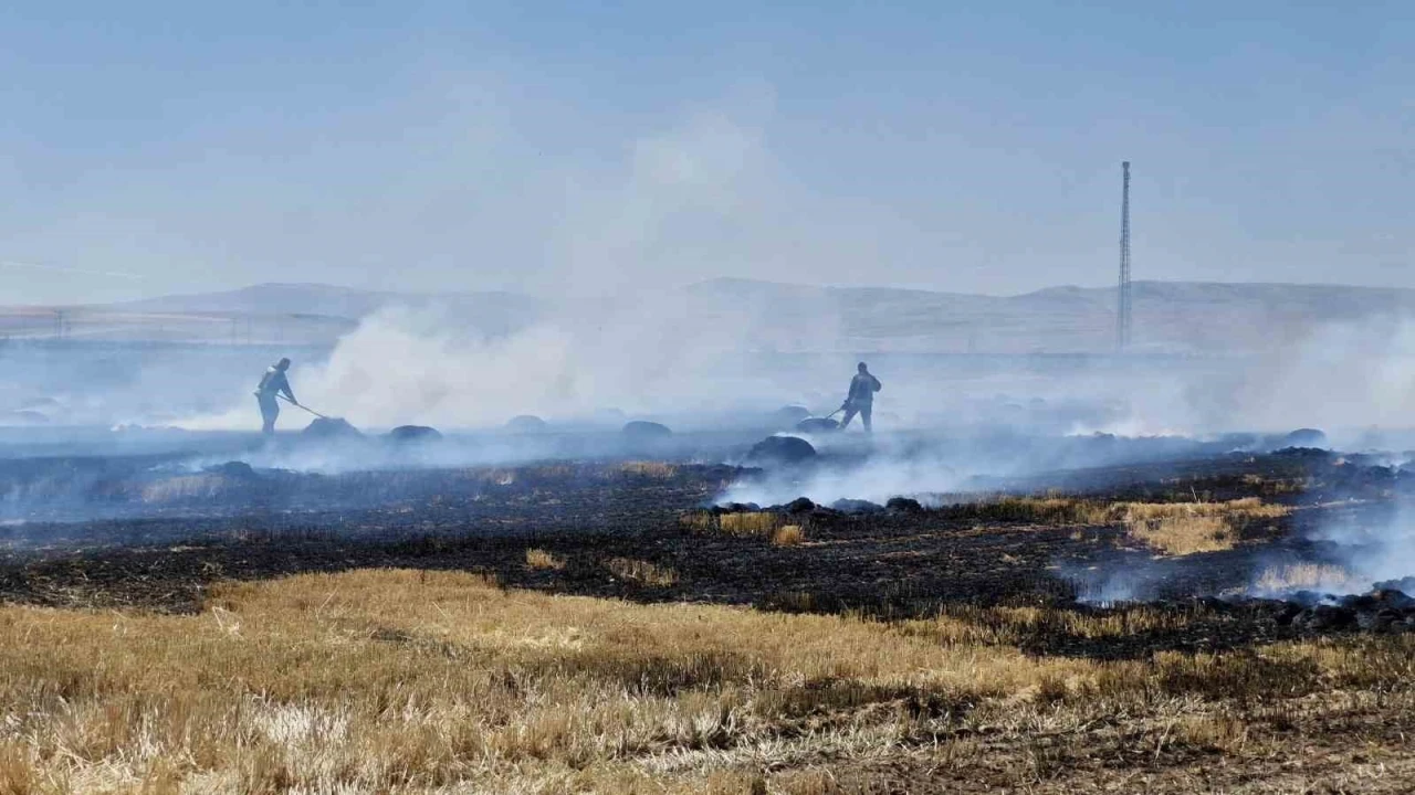 Karaman’da yüksek gerilim hattına balya yükleme asansörünün temas etmesi sonucu yangın çıktı. Yangında 40 dönüm buğday tarlası ile plastik yağmurlama boruları yanarak kül oldu.
