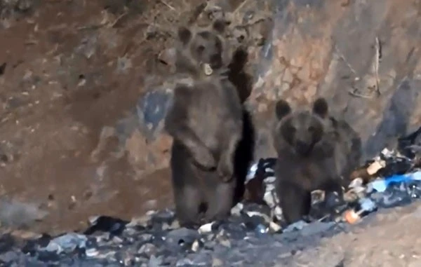 Gece saatlerinde şantiye çöplüğüne inen ayılar, etraftaki çöp poşetlerini ve atıkları karıştırarak yiyecek bulmaya çalıştı. Şantiye çalışanları tarafından cep telefonuyla kaydedilen görüntüler, bölgedeki yaban hayvanlarının beslenme zorluğu çektiğini gözler önüne serdi.