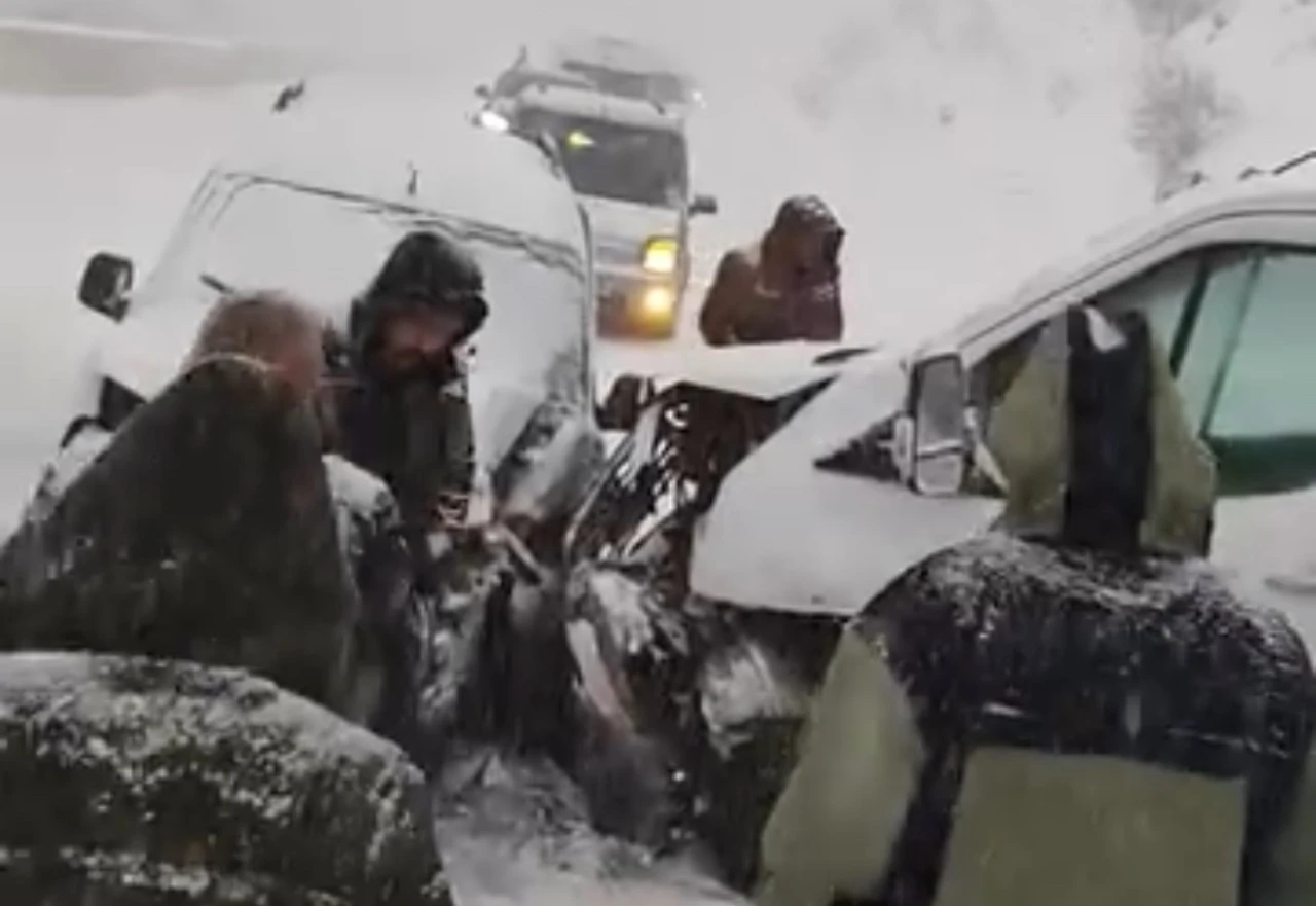 HAKKARİ (İHA) – Hakkari’nin Yüksekova ilçesinde buzlanma nedeniyle kontrolden çıkan iki kamyonet kafa kafaya çarpıştı.