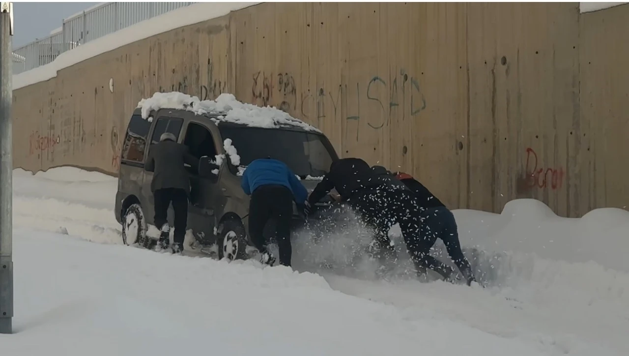 İlçede üç gün önce başlayan ve aralıklarla etkisini sürdüren kar yağışı, günlük yaşamı olumsuz etkiliyor. Kar kalınlığının ilçe merkezinde 40 santimetreye, yüksek kesimlerde ise yarım metreye ulaştığı bölgede, ulaşımda aksamalar yaşanıyor. Pizok konutları mevkiindeki ara sokakta seyir halindeki otomobil, kar ve buzlanma nedeniyle yolda kaldı. Sürücü Eren Aybar’ın kendi imkanlarıyla aracı çıkarma çabaları sonuç vermeyince, çevredeki vatandaşlar yardıma koştu. Vatandaşların yoğun uğraşları sonucu saplandığı yerden çıkarılan araç, yoluna devam etti.