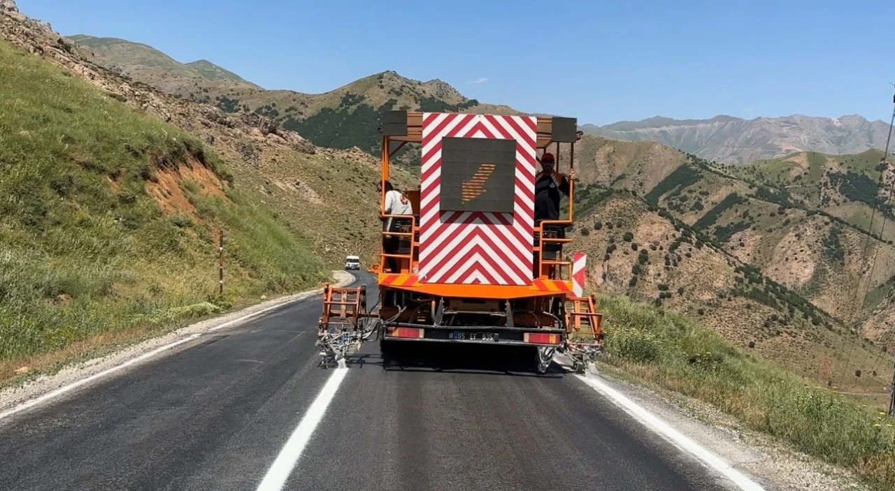 Karayolları 11. Bölge Müdürlüğü’ne bağlı Karayolları 17. Yüksekova Şube Şefliği ekiplerince yürütülen çalışmalar, sürücülerin güvenliğini ön planda tutarak devam ediyor. Sıcak asfalt zemin üzerinde beyaz şerit çizgilerini yenileyen ekipler, özellikle gece sürüşlerinde ve kötü hava şartlarında sürücülerin görüş mesafesini artırmayı hedefliyor. Bu sayede daha güvenli bir sürüş ortamı sağlanması amaçlanıyor. Çalışmalar özellikle karayolunun virajlı ve eğimli kesimlerinde yoğunlaşıyor. Bu bölgelerde trafik akışı, çalışmalar süresince geçici olarak tek şeritten kontrollü bir şekilde sağlanıyor. Ekipler, yol kenarlarına yerleştirdikleri uyarı konileriyle sürücüleri dikkatli olmaları konusunda bilgilendiriyor. Karayolları yetkilileri, sürücülerden çalışma yapılan güzergahlarda trafik işaret ve işaretçilerine mutlaka uymalarını belirtti.