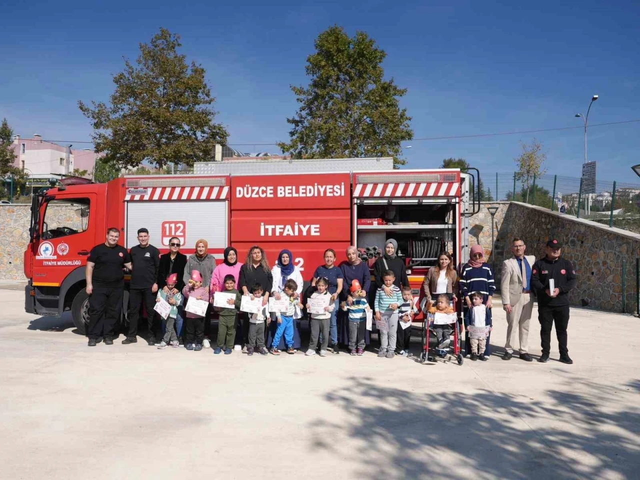 Düzce Belediyesi İtfaiye Müdürlüğü, Yangına Müdahale Eğitimleri kapsamında özel eğitim anaokulunu ziyaret etti. Miniklerin itfaiye teçhizatına ilgisi ve mutluluğu gözlerinden okundu.