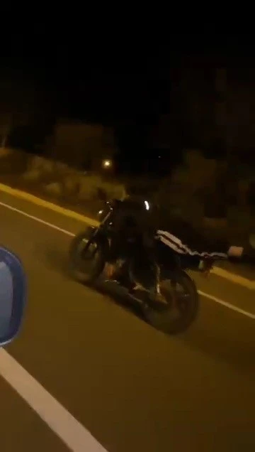 Karabük’ün Safranbolu ilçesinde sürücüsünün yüzüstü yatarak motosiklet kullandığı anlar cep telefonu kamerasına yansıdı.