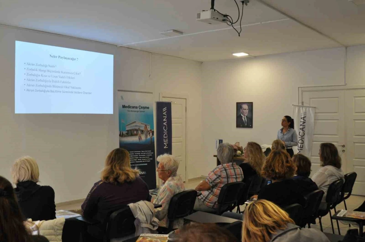 Günümüzde yaygın bir sorun halini alan akran zorbalığına karşı Çeşme Kent Konseyi Kadın Meclisi ve Medicana Çeşme Tıp Merkezi önemli bir çalışmaya imza attı. Medicana Sağlık Grubu Psikoloji Bölümü’nden Klinik Psikolog Burçin Deniz, Çeşme’de ebeveynlerle bir araya gelerek akran zorbalığına karşı dikkat edilmesi gereken noktalar hakkında bilgi verdi. Klinik Psikolog Burçin Deniz, "Akran zorbalığı bir çocuğun geleceğini şekillendiren ve üzerinde dikkatle durulması gereken bir deneyimdir" diye konuştu.