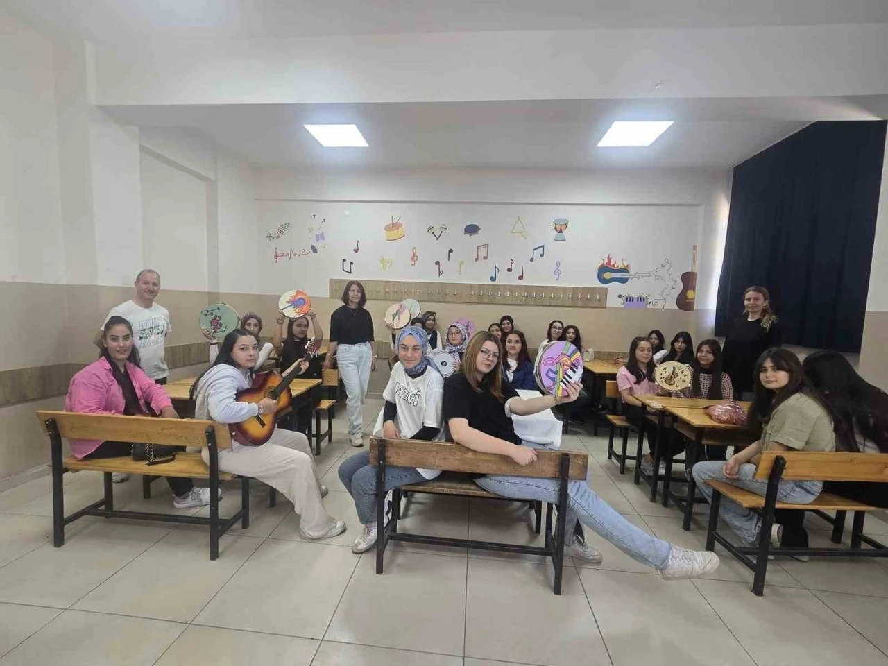 Okul yönetiminin desteği ve müzik kulübü öğretmenlerinin rehberliğinde başlatılan çalışma kapsamında öğrenciler, boş zamanlarını verimli değerlendirebilecekleri bir müzik atölyesine kavuştu. Hem bireysel hem de grup halinde kullanılabilecek olan müzik sınıfı, öğrencilerin iş birliği ve takım çalışması becerilerini geliştirmeyi hedefliyor.