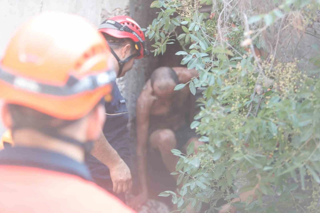 Antalya’da 15 metrelik kayalık alandan yuvarlanan ve iki kaya arasındaki oyuğa düşen adamı ekipler yarım saatlik çalışma ile bulunduğu yerden çıkardı.