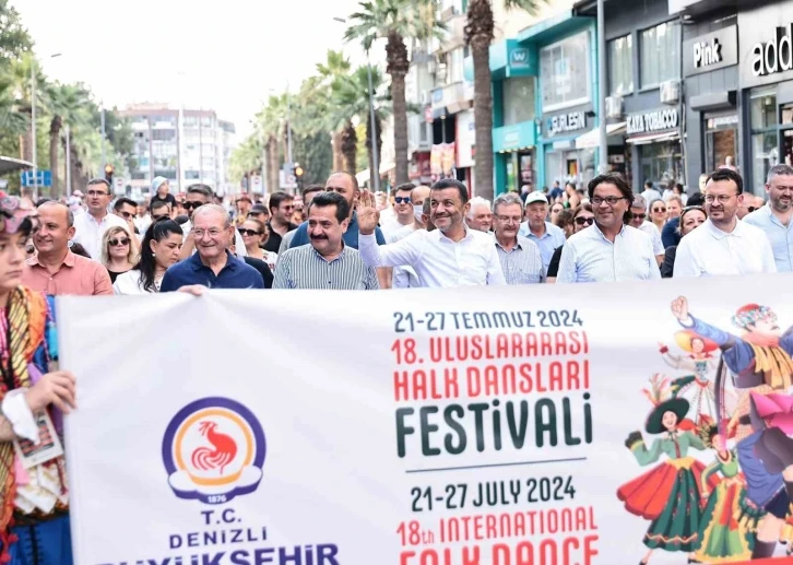 Denizli Büyükşehir Belediyesi 18. Uluslararası Halk Dansları Festivali kortej ile başladı. Denizlililerin dansa doyacağı festivale 12 ülkeden 392 dansçı katılıyor. Denizli Büyükşehir Belediyesinin bu yıl 18’incisini düzenlediği Uluslararası Halk Dansları Festivali kortej ile başladı. Kortej öncesi ise Valilik önündeki Atatürk Anıtı’nda çelenk töreni yapıldı. Denizli Valiliği önünden başlayan korteje, Denizli Milletvekili Şeref Arpacı, Denizli Büyükşehir Belediye Başkanı Bülent Nuri Çavuşoğlu, Başkanvekili Ali Marım, CHP Denizli İl Başkanı Ali Osman Horzum, Pamukkale Belediye Başkanı Ali Rıza Ertemur, Merkezefendi Belediye Başkan Yardımcısı Osman Bartal, Büyükşehir Belediyesi Genel Sekreteri Bülent Bozbaş, davetliler ve festivale katılan 12 ayrı ülkenin halk dansı sanatçıları katıldı. Renkli görüntülerin yaşandığı kortejde dansçılar ülkelerine özgü dansları sergilerken, etkinliğe yoğun ilgi gören vatandaşlar bu güzel anları çektikleri fotoğraf ve görüntülerle ölümsüzleştirdi. Müzik ve danslarla birlikte devam eden coşkulu yürüyüş Denizli Büyükşehir Belediyesi önünde son buldu. Denizli Büyükşehir Belediye Başkanı Bülent Nuri Çavuşoğlu burada yaptığı konuşmada böylesine önemli bir festivale ev sahipliği yapmaktan büyük bir mutluluk duyduklarını söyledi. Başkan Çavuşoğlu, “Umut ediyorum ki festivalimiz her geçen günü daha da güzelleşen bir Denizli’ye mutluluk kaynağı olur. Bugün on bir ülkeden, on bir renkten, on bir dünyanın sevgi gönüllüsü olan, barış elçisi olan, birlikte mutluluğun daha da büyüdüğüne inanan bu güzel dostlarımızla beraber festivalimiz daha eğlenceli, daha güzel günlere ilerleyecektir. Artık hep birlikte güzelliğin paylaşıldığı, dünyanın sevgi diliyle egemen hale geldiği bir Türkiye, bir Denizli yolculuğumuzun her geçen gün daha da artarak süreceğine inanıyorum” diye konuştu. Büyükşehir Belediye Başkanı Bülent Nuri Çavuşoğlu konuşmasında barış mesajı vererek, festivalin güzellikler getirmesini diledi. Başkan Çavuşoğlu, “Bugün buradan, bu meydandan bir kez daha dünyaya barış çağrısında bulunuyorum. Filistin’de yaşayan kardeşlerimiz ve İsrailli olmasına rağmen Filistin halkına zulüm edilenlere karşı mücadele eden İsrailli dostlarımızla beraber bu ülkede, Filistin’de zulmün, İsrail’i yönetenler tarafından yaşatılan bu zulmün son bulması için bütün dünyaya ve bütün insanlığa bir kez daha çağrıda bulunuyoruz. Biz istiyoruz ki, halkların kardeş olduğunda bu dünyada sömürgeci güçlerin yaşama şansı olmayacaktır. Festivalimiz de birlikte barışın tüm dünyaya yayıldığı ve insanların birbirini sevgiyle kucakladığı, kendi gemisini kurtaranların kaptan olduğu değil, hep beraber olduğumuzda mutlu olduğumuzu görecek dostlarla beraber yeni güzel günlerde görüşmeyi ve festivalimizin Denizli’ye hayırlı olmasını diliyorum” ifadelerini kullandı. Programın ardından 12 ülkeden gelen konukların temsilcileri Başkan Bülent Nuri Çavuşoğlu’nu makamında ziyaret etti. 27 Temmuz’a kadar Denizli’ye renk katacak festival programına katılacak gruplar şöyle: “KKTC, Hırvatistan, Arnavutluk, Polonya, Rusya, Kosova, Gürcistan, Kuzey Osetya, Dağıstan, Kuzey Makedonya, Kolombiya, Kuzeyin Uşakları (Ankara) ile ev sahibi Denizli Büyükşehir Belediyesi Konservatuarı Halk Dansları Topluluğu, Denizli Büyükşehir Belediyespor Kulübü Halk Dansları Topluluğu ve 15 Temmuz Şehitler Anadolu Lisesi Spor Kulübü.” Denizli Büyükşehir Belediyesinin 1 hafta boyunca ücretsiz olarak sunacağı festival programı ise şöyle, 22 Temmuz Pazartesi günü, saat 20.30 Acıpayam ve 21.30 Serinhisar’da olucak. 23 Temmuz Salı günü, saat 21.00 İncilipınar Parkı ve saat 21.30 KYK (Amfi Tiyatro)’da olucak. 24 Temmuz Çarşamba günü ise saat 20.30 Sarayköy ve 21.30 Buldan’da olucak. 25 Temmuz Perşembe günü, 21.00 Yenişehir Zaferiye Abalıoğlu İlkokulu ve 21.30 Adalet Parkı’nda olucak. 26 Temmuz Cuma günü ise 20.30 Bozkurt ve 21.00 Çardak’ta olucak. Son gün ise 27 Temmuz Cumartesi günü ise 21.00 Gala Programı, Büyükşehir Belediyesi Nihat Zeybekçi Kongre ve Kültür Merkezi’nde son bulacak.