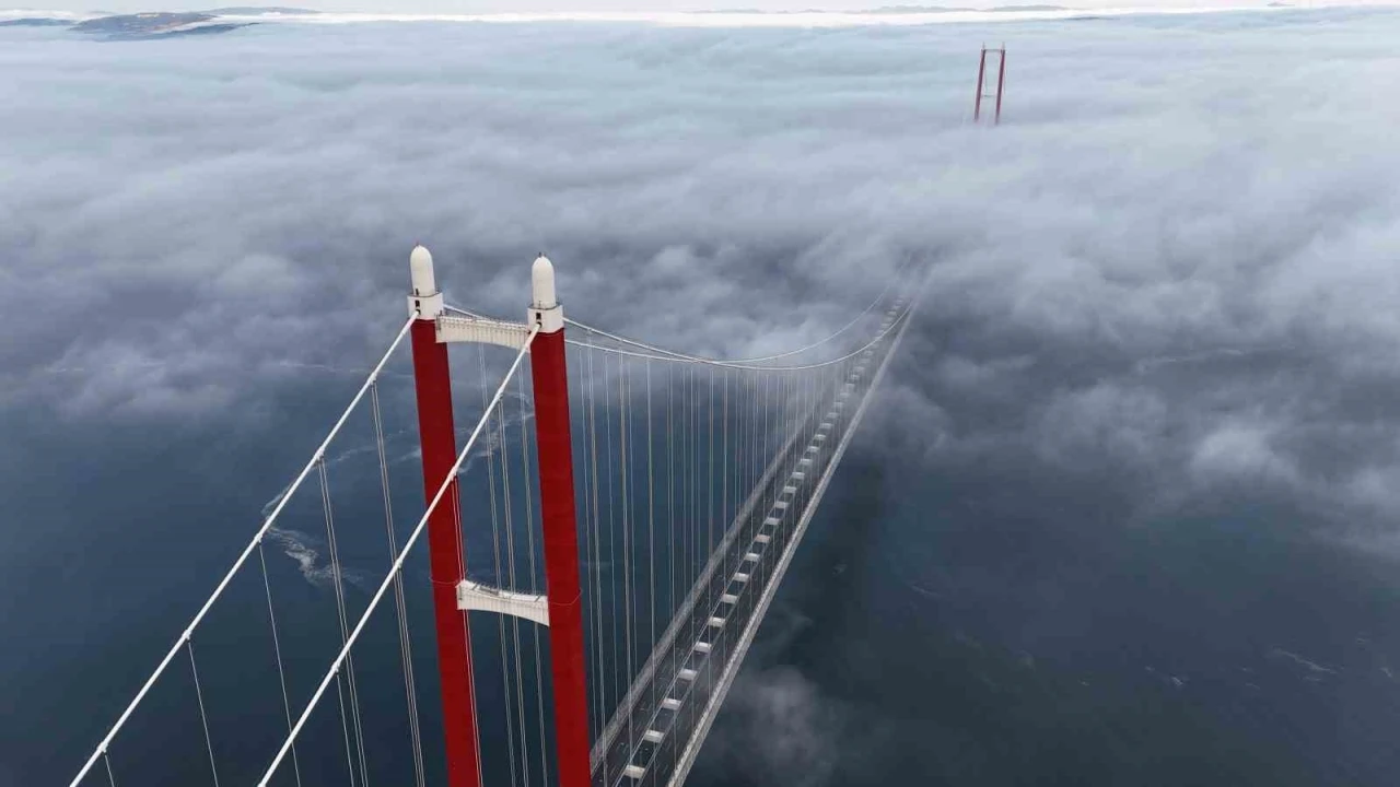 Çanakkale Boğazı’nda yoğun sis içinde kalan 1915 Çanakkale Köprüsü görüntüsüyle mest etti.