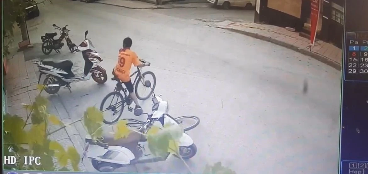 Eskişehir’de bisiklet tamiri yapılan dükkanın önündeki 2 bisiklet yaklaşık 40 saniye içinde çalındı. O anlar güvenlik kamerasına anbean yansıdı.