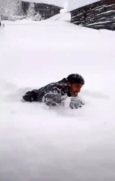 Kastamonu’nun Çatalzeytin ilçesinde bir vatandaş, 2 metre kalınlıktaki karda yürüyemeyince yüzerek evine gitmeye çalıştı. Eşi tarafından çekilen o görüntüler, sosyal medyada büyük beğeni aldı.