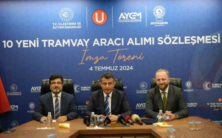 Samsun Büyükşehir Belediyesi, Ulaştırma ve Altyapı Bakanlığı Altyapı Yatırımları Genel Müdürlüğü ve yüklenici firma arasında 10 yeni tramvay aracı alım sözleşmesi imzalandı. İlk tramvayların 24 ay sonra teslim edileceği ihale kapsamında Samsun’da kullanılacak tramvaylar Türkiye’de yüzde 10 eğimde gidebilen, yüzde 70 yerlilik oranına sahip ilk hafif raylı sistem araçları olarak faaliyet gösterecek. İmza töreninde yüzde 70 yerlilikle Türkiye’de raylar üzerinde giden ilk araçlar olacak tramvayların 24 aydan önce teslim edilmesi için ise gerekli çaba gösterilecek. “Yüzde 10 eğimle çıkan tramvay Türkiye’de başka yerde yok”