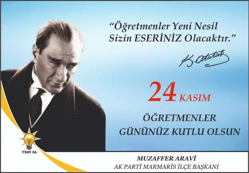 Gündem 24 Kasım Öğretmenler Gününüz Kutlu Olsun! “Yeni nesil, sizlerin eseri olacaktır.” – Mustafa Kemal Atatürk 23-11-2025 13:47 23-11-2025 13:49 Editor : ARZU BARIŞKANER 45 OKUNMA
