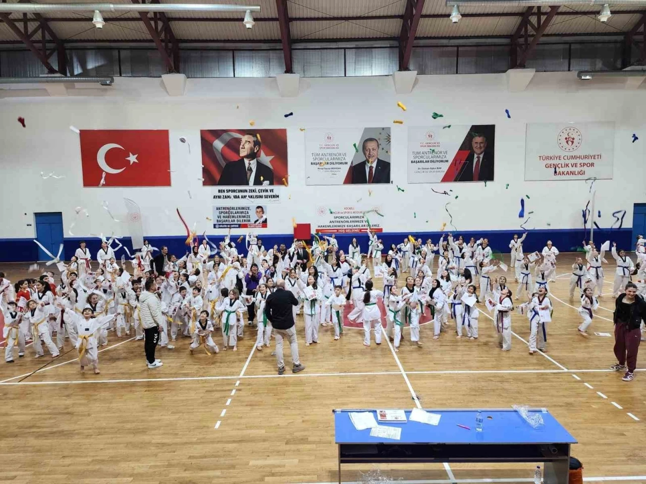 Gölcük Belediyespor bünyesindeki tekvando branşında bulunan 270 sporcu, düzenlenen törenle kuşak atladı.