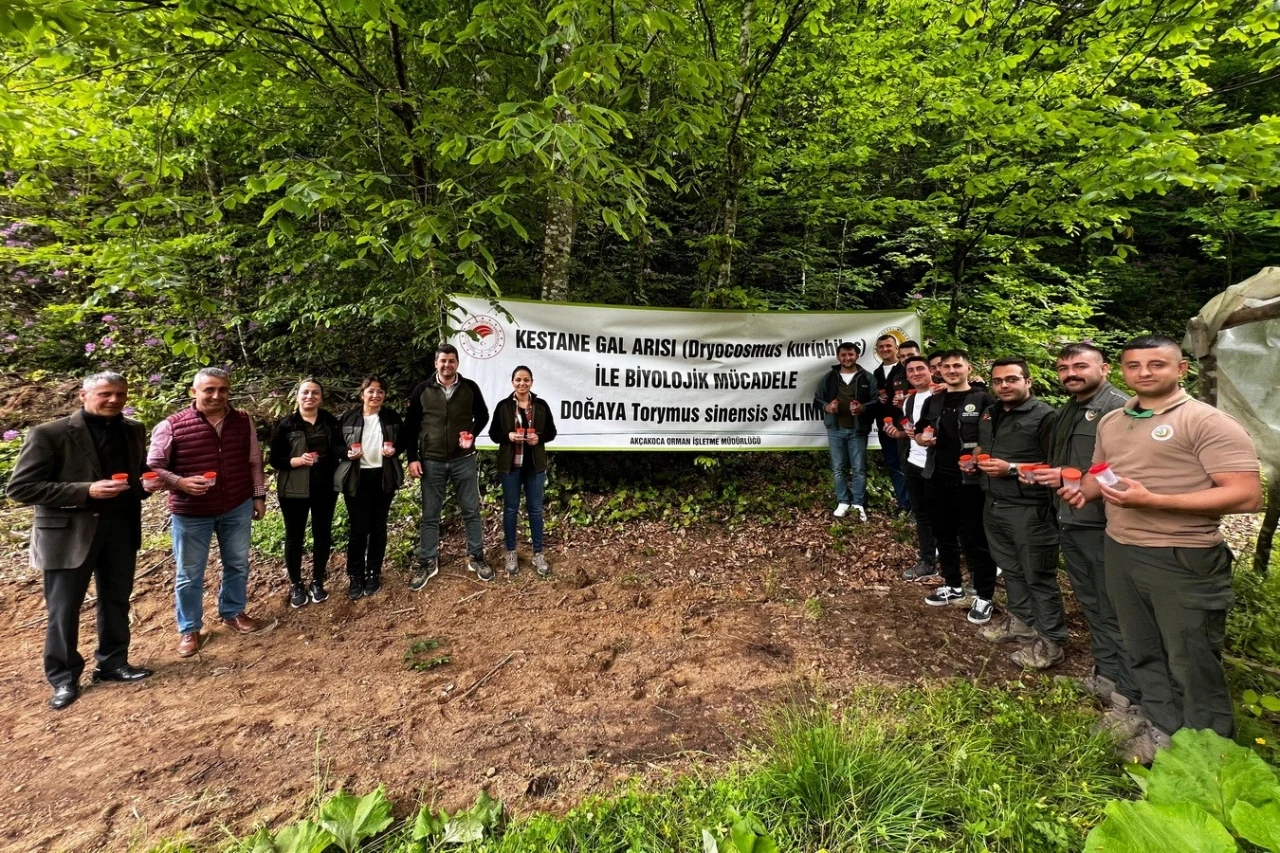 Akçakoca Orman İşletme Müdürlüğü’nce bölge mıntıkasında yer alan kestane ormanlarına Kestane Gal Arısı ile mücadele kapsamında laboratuvarda üretilen ’’Torymus Sinensis’’ yırtıcı böceğinin aralıklı olarak yeni salımlarının yapılmaya devam edileceği belirtilmiştir.