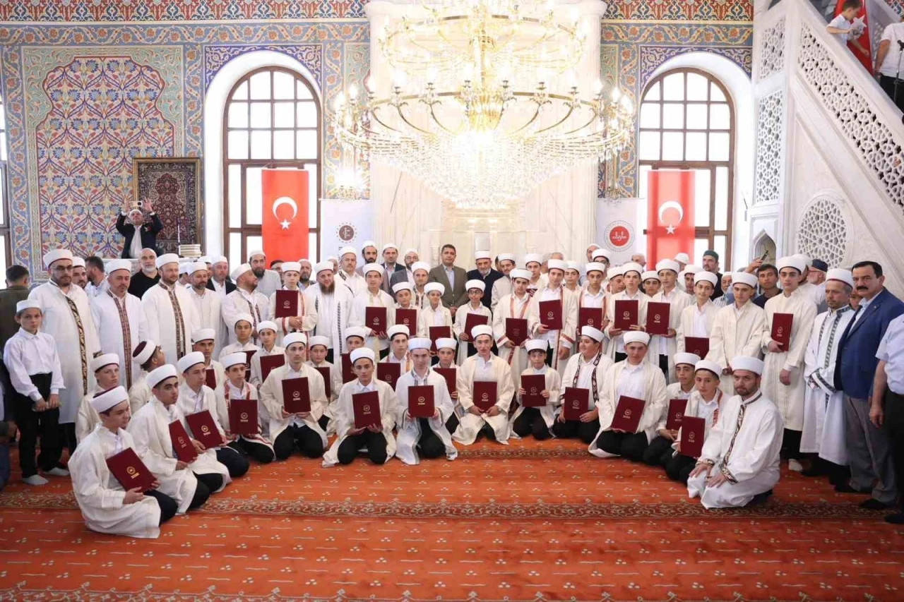 Merkez Büyük Cami’de düzenlenen icazet törenine Düzce Valisi Selçuk Aslan, Düzce Müftüsü Osman Aydın, hafız olan 41 genç ve aileleri katıldı.