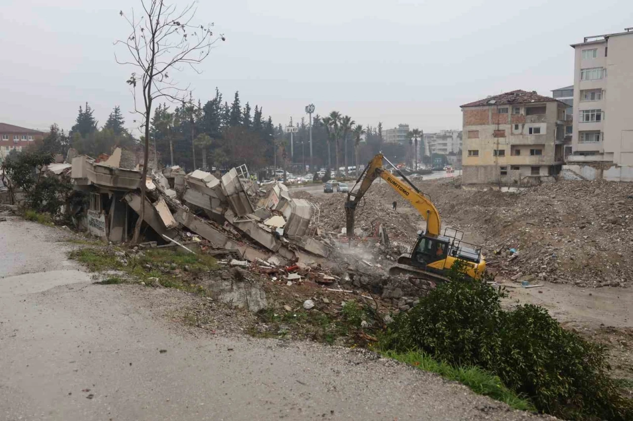 Kahramanmaraş merkezli depremlerde ağır hasar alan Hatay’da mahkeme süreci sona eren binaların yıkım ve enkaz kaldırma çalışmaları aralıksız sürüyor. Antakya ilçesi Kışla Saray Mahallesi’nde bulunan 5 katlı bina, iş makinesinin darbesiyle yerle bir oldu. Binanın yıkımı sırasında iş makinesinin binanın altında kalmaktan son anda kurtulduğu anlar ise kameralara anbean yansıdı.