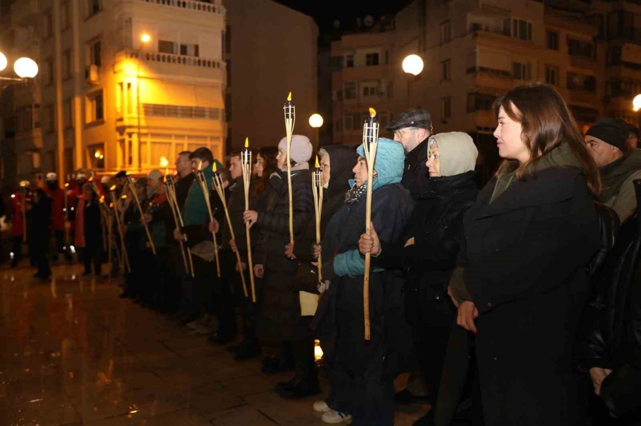 Mudanya’da düzenlenen anma töreninde, depremin gerçekleştiği saat 04.17’de vatandaşlar mumlar ve meşaleler eşliğinde 65 saniye sessiz kaldı.