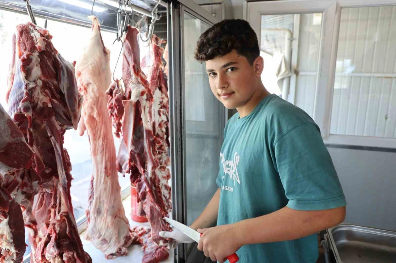 Kasaplık mesleğinin ailenin geleneği olduğunu ve bu geleneği devam ettirmek istediğini belirten 14 yaşındaki kasap Muhammed Enes Başak, “14 yaşındayım ve 8. sınıf öğrencisiyim. Etleri kesip kıyma makinesini atıyoruz. Maydanozla birlikte harç yaptıktan sonra tepsi kebabı ve kağıt kebabı yapıyoruz. Fırınlarda pişirip müşterilere hizmet ediyoruz. 8 yaşından dedem ilk bana öğretti, babam ise beni kasap dükkanı getirip götürürdü. Bu kasap mesleğine yavaş yavaş öğrenmeye başladım. Dedemden, babamdan da bana geçen bu geleneği devam ettireceğim. Ben bu mesleği sevdiğim için burada çalışıyorum. Yaz tatilinde kesimhaneye gidiyorum. Burada mesleğin daha iyi inceliklerini öğreniyorum. Dana, inek ve koyunları kesip onların etlerini ayırıyoruz. Babamın açtığı iş yerini daha iyi ve daha güzel bir hale getirmek istiyorum. Okul zamanında okula gidiyorum ve boş zamanlarımda babamın yanına gelip mesleği öğreniyorum. Kasap mesleğini tam öğrenmiş olduğum için müşterilerin bazıları sen yap dedikleri için ben de onları yapıp onlara veriyorum” dedi. “Bazı müşterimiz geliyor, ‘Enes bana kağıt kebabı yap veya tepsi kebabı yap’ diyorlar”
