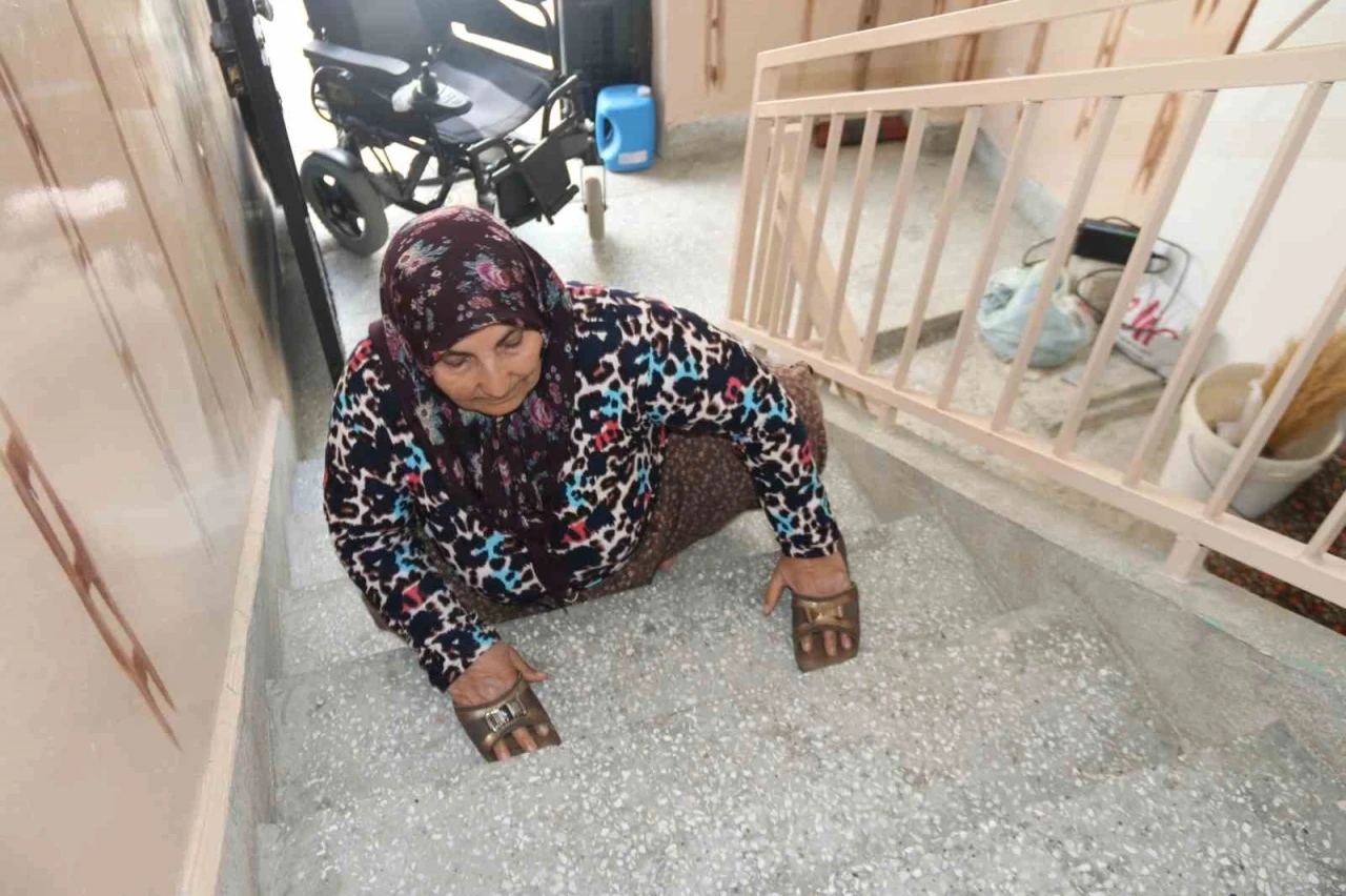 Akülü tekerlekli sandalyesini apartmanın giriş kısmına bırakan yaşlı kadın, çocuk gibi emekleyerek 2’inci kattaki dairesine 20 dakikada çıkabiliyor. Taşlar batmasın diye ellerine terlik giyen Avcı, kışın ise soğuk zeminde oldukça üşüdüğünü belirtti. İkinci kata çıkışını kolaylaştıracak bir engelli asansörü yapılmasını her şeyden çok istediğini belirten, elleri ve ayakları sürünmekten nasır tutan kadın yaşlı kadın, yetkililerden yardım bekliyor. "Çocuk gibi emekliyorum"