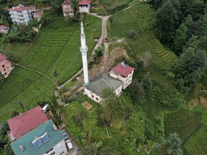 Trabzon’un Hayrat ilçesinde bulunan 809 yıllık tarihi camiyi kurtarmak için mahalle halkı bir araya gelerek aldıkları izin doğrultusunda cami çevresinde bulunan ağaçları kesti.