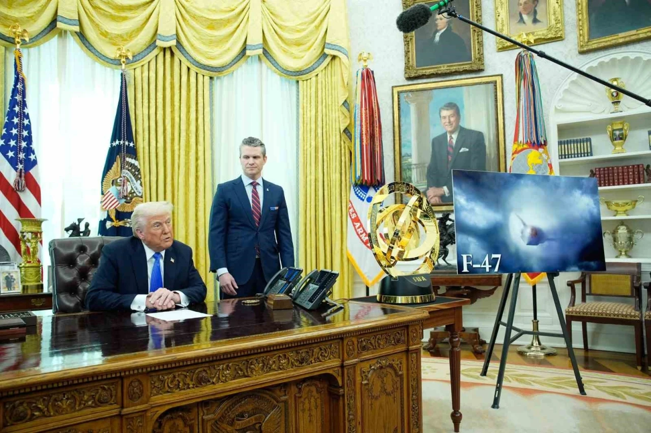ABD Başkanı Donald Trump, Savunma Bakanı Pete Hegseth ile gazetecilere yaptığı açıklamada ABD yapımı 6. nesil savaş uçağı F-47’yi tanıtırken, "Bu, bir savaş uçağının tüm özellikleri açısından daha önce hiç kimsenin görmediği bir şey" dedi.