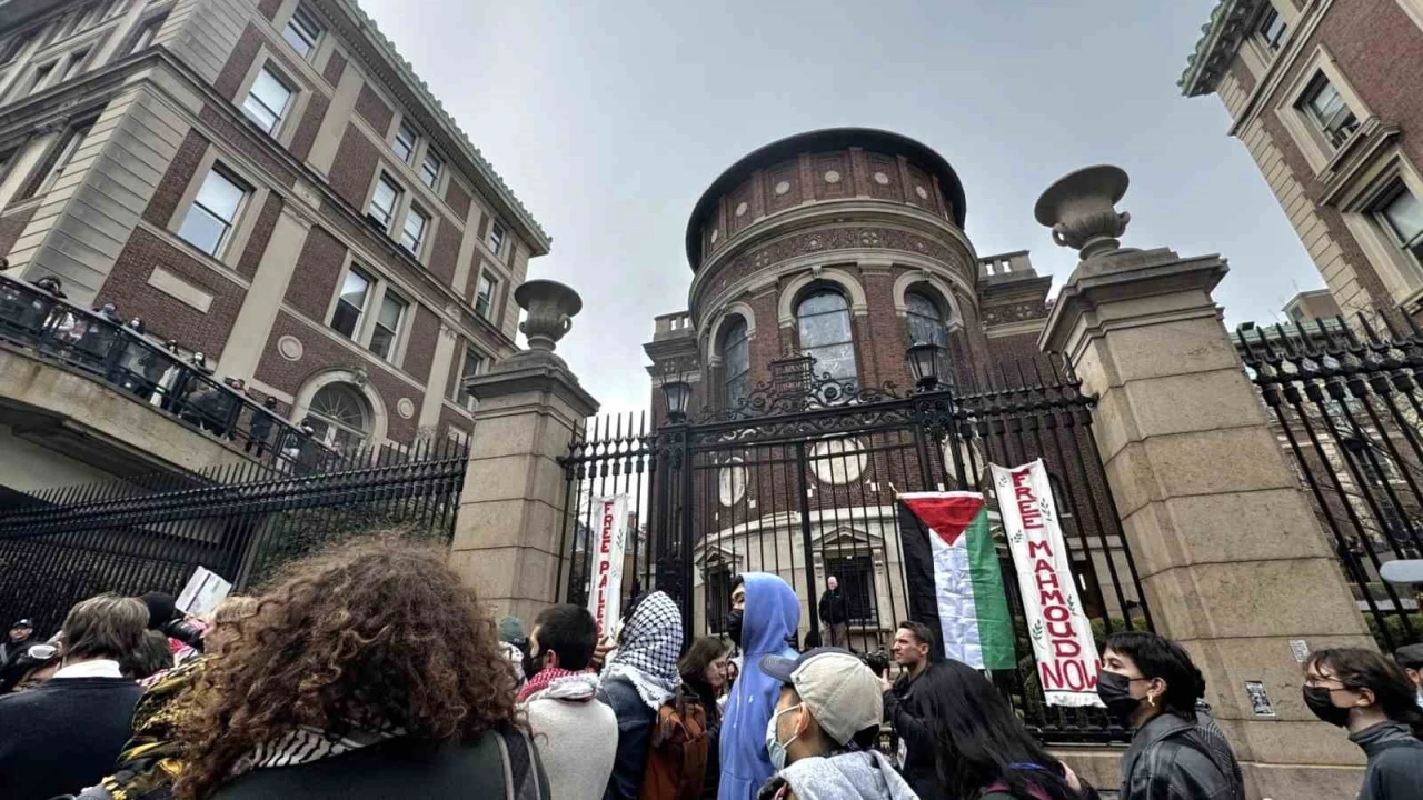 ABD’deki Columbia Üniversitesi’nde Filistin’e destek protestolarının öncülerinden olan öğrenci aktivist Mahmoud Khalil’in ABD Göçmenlik ve Gümrük Muhafaza (ICE) yetkilileri tarafından gözaltına alınması protesto edildi. Bir grup öğrenci, Khalil’in serbest bırakılması için birbirlerine zincirli halde üniversite içerisindeki binaların önünde oturma eylemi başlattı.