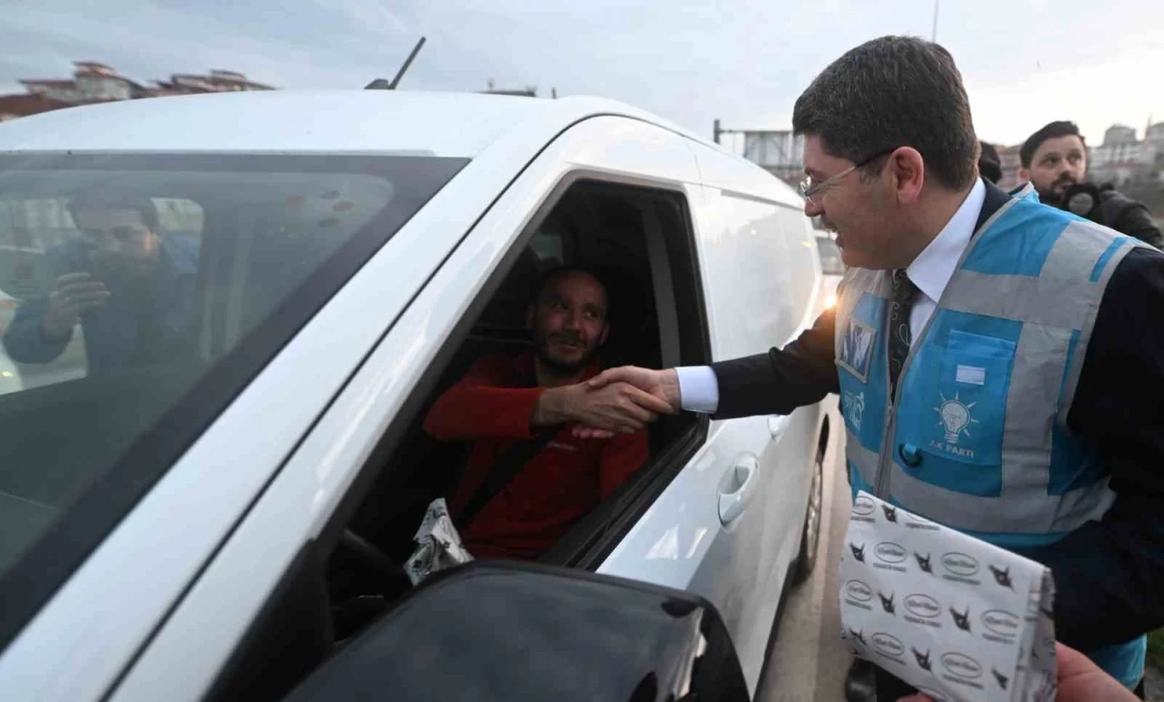 Adalet Bakanı Yılmaz Tunç, iftar vakti evine yetişemeyen vatandaşlara ikramda bulundu.